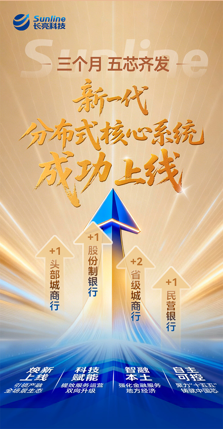 近三個月內,長亮科技助力五家銀行成功上線新一代分布式核心系統(以下簡稱:新核心系統),為全國股份制銀行、區域銀行的數智化轉型樹立了標桿典范。新核心系統展現出良好的穩定性與擴展性,處理效率與業務支撐能力得到有效提升,為銀行夯實服務實體經濟的數字金融基座注入了核心動能。