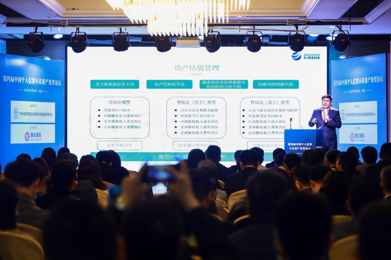 此次論壇上,長亮科技創新業務部總經理黃定發就“金融科技賦能個貸不良資產批量轉讓業務”發表主題演講,重點闡述了金融科技創新對個貸不良資產轉讓業務的重要支撐作用。圍繞個貸不良資產估值邏輯合理性及個性化、業務價值提升、清收處置風控管理、個貸業財一體化、轉讓后多方業務聯動等需求痛點,重點分享了如何通過大數據建模建立資產估值模型,引入AI智能作業,打造業務共贏生態圈,助力個貸不良資產批量轉讓多方共贏。