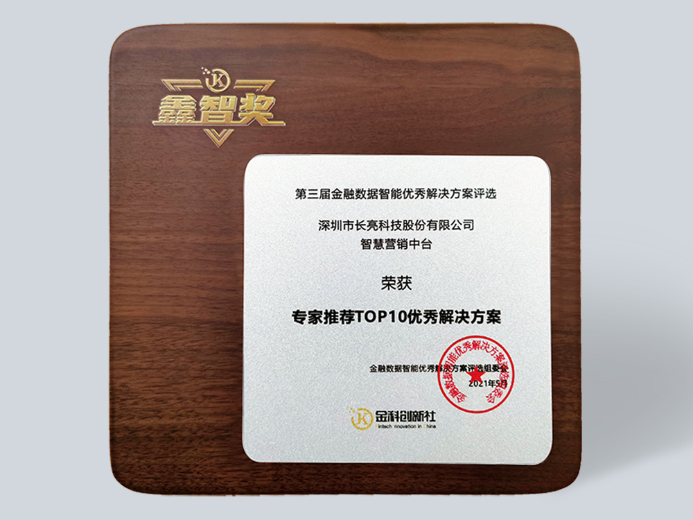 經(jīng)過5場線上答辯,以及來自國家科技評估中心、中國人民銀行以及銀行、保險、證券、基金等金融機構(gòu)的52位評審專家和陪審專家兩輪打分、點評,長亮科技智慧營銷中臺憑借在數(shù)據(jù)標(biāo)簽、畫像、算法模型、營銷活動、營銷模板等方面的先進(jìn)性與成熟性,獲得“專家推薦TOP10優(yōu)秀解決方案”、“營銷創(chuàng)新優(yōu)秀解決方案”兩項大獎。